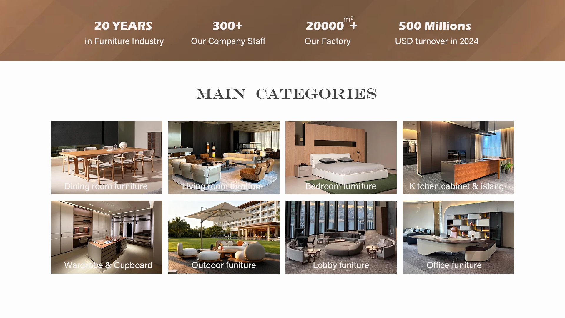 Productos principales:Silla de comedor, sofá, cama, sillón, mesa de centro