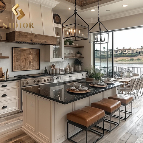 American Country Style Modulare Küche Black Marble Island Counter Cabinet Set Modernes Design Aufbewahrung funktion Moderne Küche